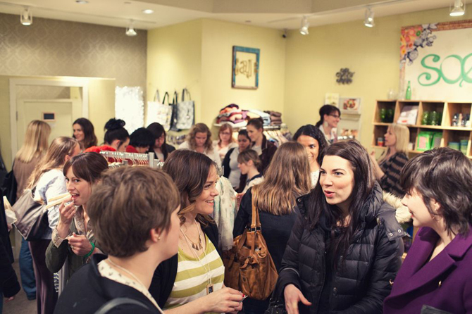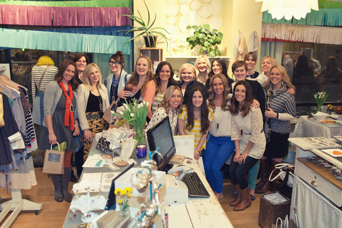 some of the darling doily decor, and and some more of my favorite ladies including the hosts shelby, owner of soel boutique, and jane of see jane blog.  and, becky kimball of becky kimball photography (she took all the amazing photos of the night!)