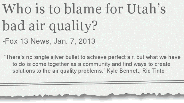 I think this winter the inversion has been particularly bad, and we all want something done about it. But, the fact is we all have environmental stewardship. The main source of air pollution in Utah is us, small businesses, homes, commercial spaces, cars! To learn more, visit the Kennecott air quality page.