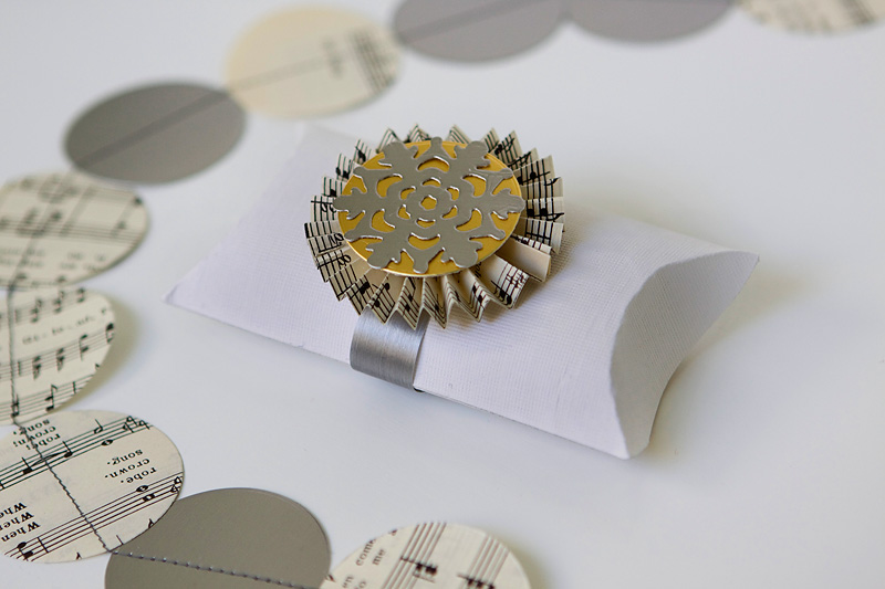 i used my lifestyle craft / quickutz die cutting machine (the epic six tool) with the simple circles, fancy wrap around envelope tabs, and a small snowflake die cut. i just took a kraft envelope and card. for the card, i used my sewing machine to sew on the circles in gold and silver.
